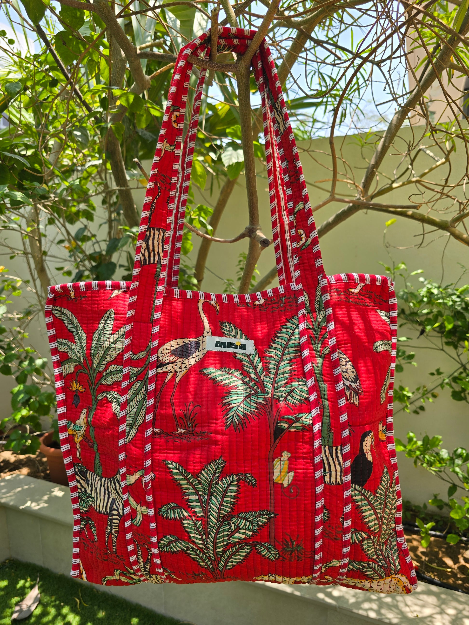 Introducing MiSh Cotton Quilted Tote Bag, a perfect blend of style and functionality. With Florals prints, this tote bag not only complements your outfit but also brings a touch of nature with feel of calmness wherever you go.